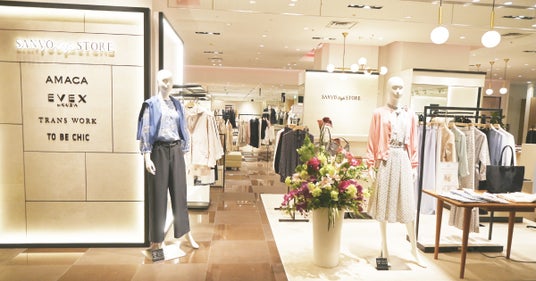 近年、都市部の百貨店では高級路線へのシフトによるラグジュアリーブランドの展開拡大が顕著になっています。それに伴い婦人服売場は縮小傾向となり、特にボリュームゾーンの婦人服ブランドにとっては売場の確保と効率的な運営が課題となっています。また、ファッション業界では消費者の嗜好が多様化し、単一ブランドの店舗だけではお客さまの幅広いニーズに応えることが困難になってきました。このような環境変化に対応するため、三陽商会は2023年に当社が展開するアッパーミドル層向けの婦人服ブランド「AMACA」、「EVEX by KRIZIA」、「TO BE CHIC」、「TRANS WORK」の4ブランドの複合型コンセプトショップ「SANYO Style STORE」をオープンしました。