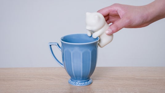 カップにしがみついて一生懸命ふーふーする姿を、思わず応援したくなるようなデザインに仕上げましたので、ぜひご自身のカップにひっかけてあげてください。