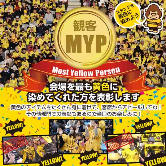 会場を黄色に染めてくれた方を場内ビジョンで表彰します。黄色いアイテムを身に着けて、会場でたくさんアピールしましょう。
