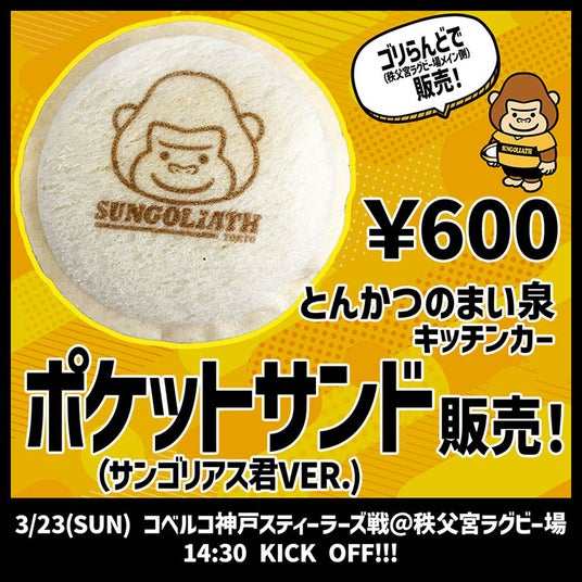 とんかつまい泉サンゴリアス君ポケットサンドなども販売します!
