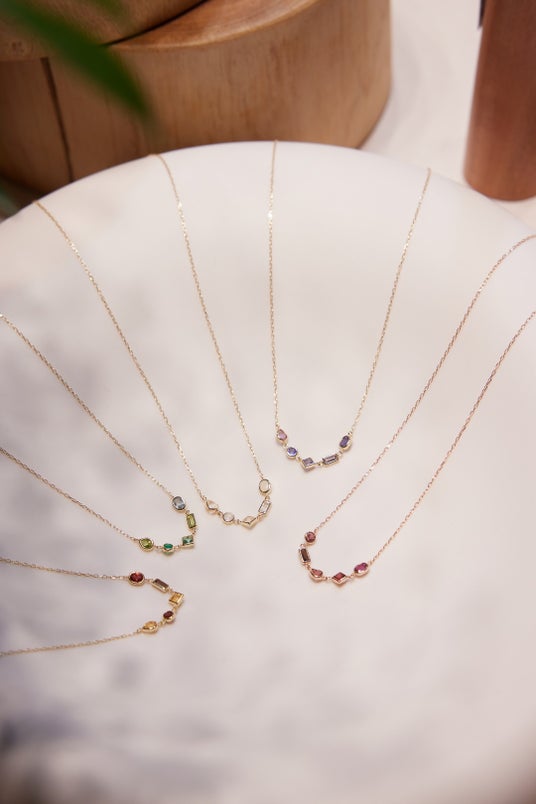 オープンを記念し、5 石のカラーストーンをあしらったネックレス(全5種)を全国に先駆けて先行発売。スライドアジャスターで長さ調節ができ、チョーカーのようにも着用可能。手持ちのネックレスとの重ね着けを楽しめます。