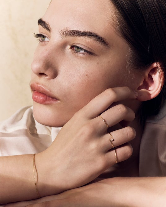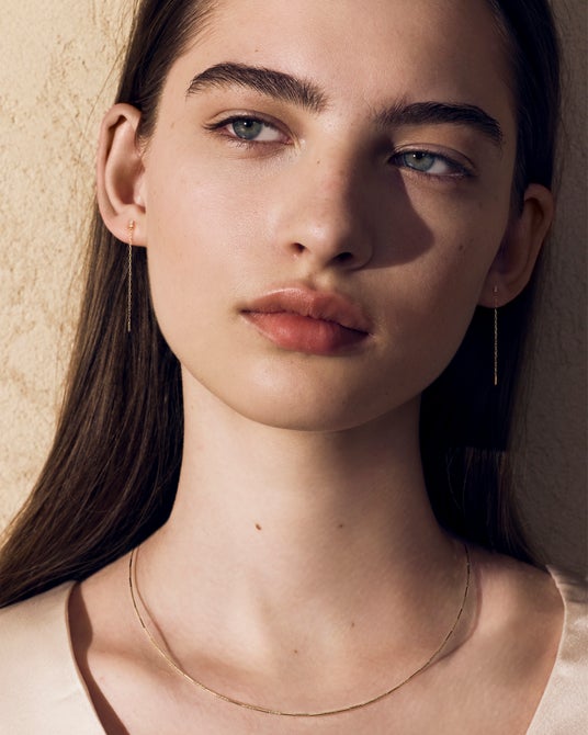 ひと筋の光のラインを纏うかのような繊細なジュエリーがラインナップ。