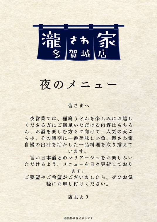 より多くの方に、瀧さわ家の夜を楽しんでいただけるようになりました。
