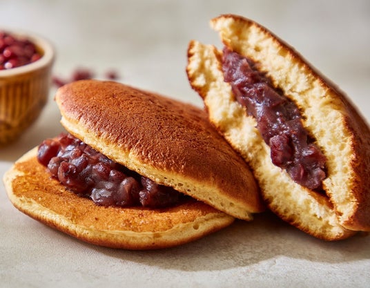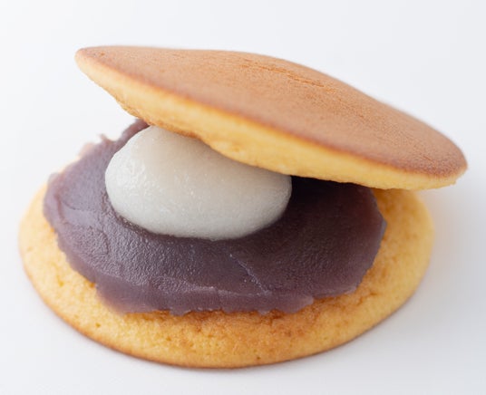 ふっくら焼き上げたどら焼きの生地に、北海道産小豆をたっぷり使ったつぶあんと、羽二重餅をはさみました。