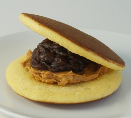濃厚なピーナッツバターのコクと、落花生のつぶつぶとした食感がクセになるどらやきです。