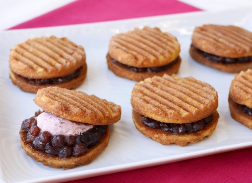 千寿せんべいがどらやきに。たっぷりの粒餡に、甘酸っぱいいちごとラズベリークリームが爽やか!