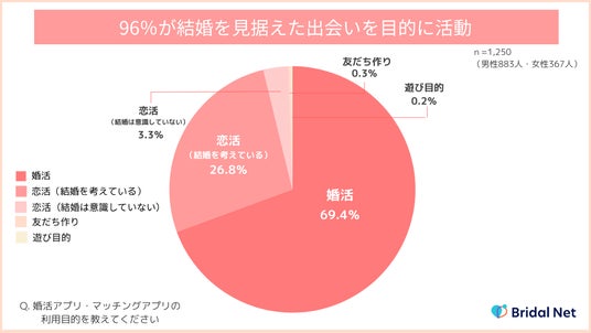 【婚活男女1,250名に調査】ブライダルネット利用会員の96%が「結婚を見据えて活動」と回答