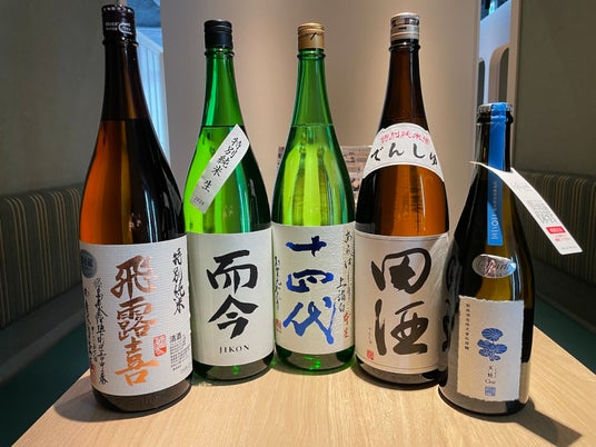 当プランは、十四代、田酒、而今、飛露喜、新政の希少酒5種類の飲み比べに加え、日本酒に合うお料理4品と2時間のプレミアム飲み放題付きで、お一人様¥3,620(税込)とお得なプランとなっております。