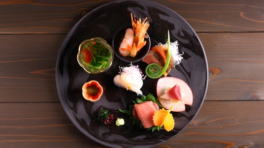 ※恵み ノール・ナチュールでございます。フランス語で『北の自然』を意味しており、北海道の海の幸5点盛りでご用意いたしました。