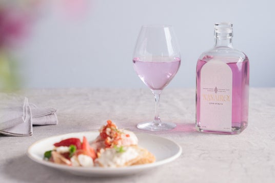 飲食店からの好評を受け、ピンク色の焼酎スピリッツ「NANAIRIO-七色-」の飲食店向け720mlボトルを新たに販売開始