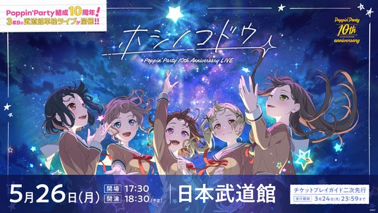 - 5月26日(月)開催 Poppin'Party 10th Anniversary LIVE「ホシノコドウ」 チケットプレイガイド二次先行が受付中