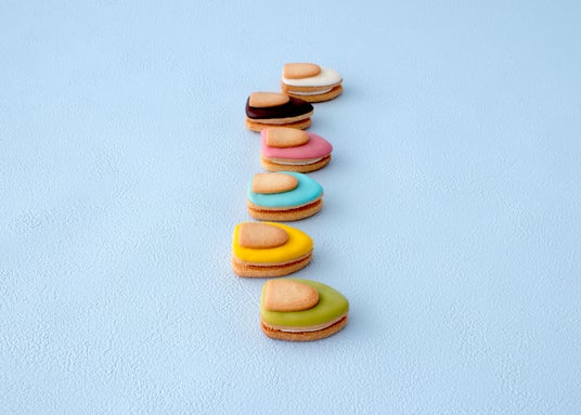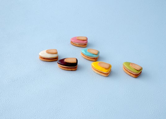 厚めのサブレでバニラクリームをサンドし、ボートレースの6艇のカラフルな色分けをチョコレートで表現したお菓子は、レースの臨場感を味わえるよう、1号艇から6号艇までの6種類、それぞれ異なるフレーバーでお作りいたしました。
