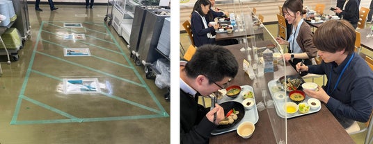三重県は、アイゴが一生のうちに食する海藻の量を独自に試算し、「今回のメニュー1食を食べると約6.6平方メートル の藻場を守る(試算)ことにつながります」とアピール。それを示すために、県庁職員の発案で実際の面積をテープの枠で表現する仕掛けも。販売開始から約1時間後には、用意された100食は完売し、訪れた人たちの磯焼けと植食性魚類に対する関心の高さがうかがえる結果でした。実際に定食を食べた人からは、「身がふっくらしておいしい」「一般的な白身魚と遜色ない」「食べることで環境対策に貢献できることが嬉しい」などの声が聞かれました。