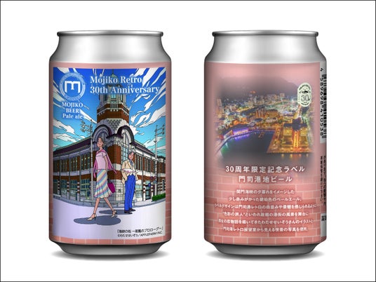 門司港レトロ30周年のお祝いとして記念ラベルのオリジナル門司港地ビールを販売。デザインには北九州市身のイラストレーターわたせせいぞう氏のイラストと門司港レトロ展望室からみえる夜景の写真を使用しています。