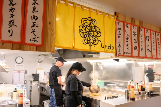 2023年8月、うどんのお好み焼き専門店としてオープン。うどんに特化したのは、5店舗お好み焼き店が並ぶ/5(ゴブンノ)の中で特長を出し、選んでもらうことが目的でした。店名の「undo」は「udon(うどん)」のアナグラムで、英語で「ほぐす」という意味もあります。お好み焼きを食べて、リラックスして楽しい気持ちになってほしいという願いも込めています。