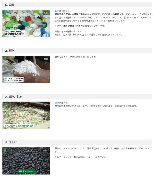 <エコキャップ選別システムの4つの工程。素材や色など様々な種類があるキャップをどう選別するかが鍵!>