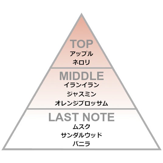 柔らかなホワイトフローラルのアコードにフレッシュフルーティな香りを重ね、パウダリーなアロマでまとめた光を纏ったように優雅な香りを選びました。