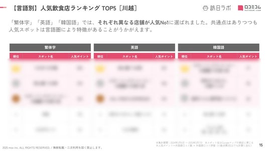 - 調査対象:訪日ラボが独自に選出した川越エリアの飲食店 283か所