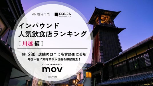 業界最大級のインバウンドビジネスメディア「訪日ラボ」及び 店舗向け集客一元化プラットフォーム「口コミコム」を運営する株式会社mov(代表取締役:渡邊 誠、本社:東京都渋谷区、以下mov)は、浅草エリアの飲食店に寄せられた最新の口コミデータから、独自の『インバウンド人気観光地ランキング』を発表しました。