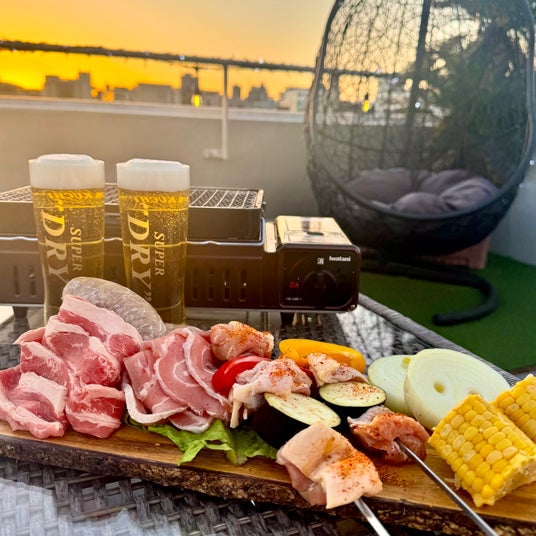 手ぶらで気軽に♪南国風屋上テラスで祇園の街並みを眺めながら【BBQコース】