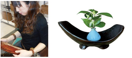 ●(富山)高岡木工/藤島木材工芸 藤島はるみ手彫り、漆で仕上げた伝統工芸士作の逸品。