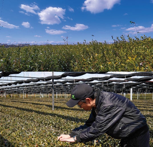 広大な西尾の抹茶の茶園にて、春を待つ抹茶たち。それを丁寧に手入れをし一番茶の収穫を待ちます。今の時期は、霜がつ過内容に最新の注意をはらう。