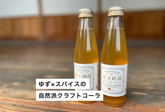 「富士山嶺クラフトコーラ」はゆずとスパイスを組み合わせ完全無添加にこだわりました。甘さ控えめなので食事のお供としても相性ぴったりです。