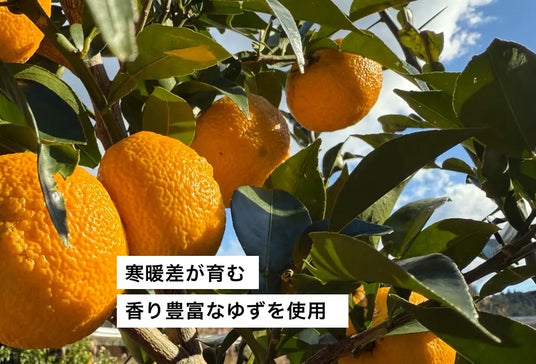 ゆずは、本来加工時には捨てられてしまう皮や中綿の部分も余すことなく使用。ゆずの香りを存分に楽しめるだけでなく、サステナブルな商品でもあります。