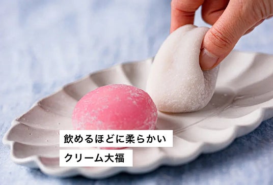 開発するにあたり、商品として成立するギリギリの柔らかさを追求しました。口に入れた瞬間、口内の温度で溶けていく絶妙なバランスを見つけるのは非常に難しく、柔らかさを求めすぎるあまり、生地が破れてしまうことも。試行錯誤を繰り返し、1年ほどかけて理想的なクリーム大福を完成させることができました。