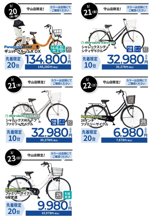 ~台数限定で自転車が7,678円!スーパーカネスエ守山店様と同日オープン!~