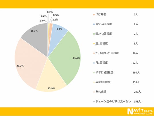 チェーン店のピザを食べる頻度は、「半年に1回程度」が最多