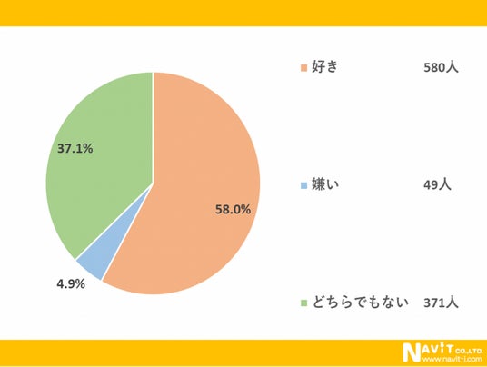 チェーン店のピザは好きですか?という質問については、「好き」が58.0%、「嫌い」が4.9%という結果になり、半数以上の方が好きだということが分かりました。