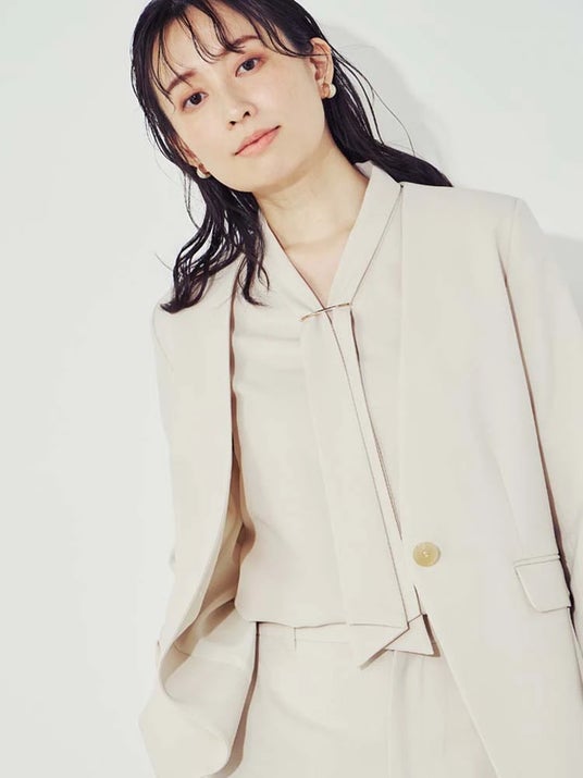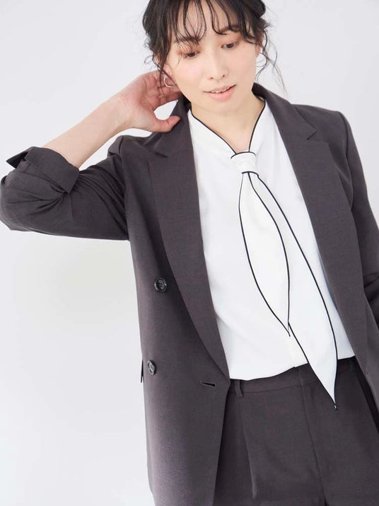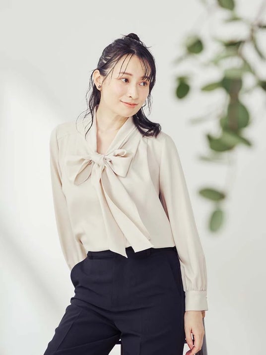 P.S.FAレディスのおすすめ春のオフィスウェアはフロントのデザインがアクセントの華やか&きちんとブラウス~新生活のワークシーンを爽やかに過ごそう~