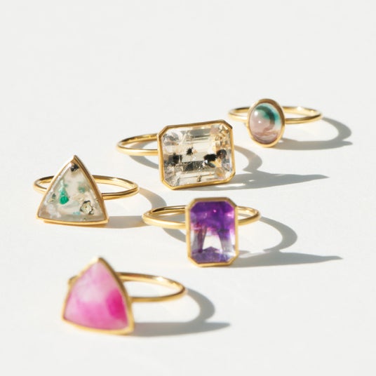 自然が何万年もかけてうみだした鉱物のなかでも、まるでアートのようにインクルージョンが美しく、通常では目にすることのできない希少なものが厳選されて揃う貴重な機会。鉱物はルースのままご購入いただけるとともに、選んだ鉱物をそのまま唯一無二のリングとしてオーダーすることも可能です。