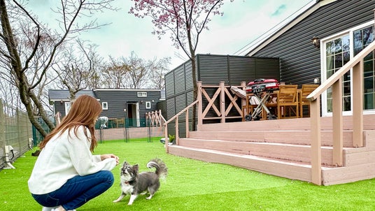 「Solana伊豆高原」では、トレーラーハウスとは思えない広々とした室内空間に加え、専用のウッドデッキにはBBQグリルを完備。全棟にプライベートドッグランがついており、愛犬と一緒に心ゆくまで過ごすことができます。