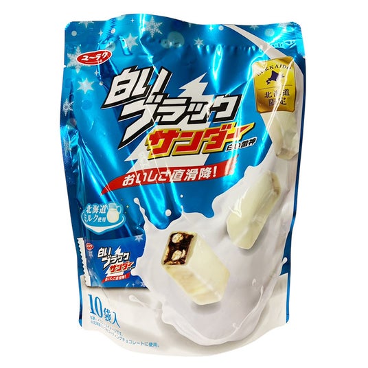 ほろ苦いココアクッキーとプレーンビスケットを、北海道ミルクを使用したホワイトチョコレートでコーティング。ザクザクとした食感とミルクの味わいが楽しめます。