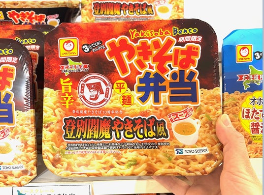 地元北海道の食材である、ほたての旨みを味わえる「オホーツクほたてバター醤油味」と、北海道登別市のご当地グルメ「登別閻魔やきそば※」の味わいを再現した一品です。