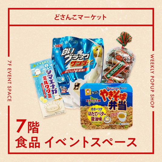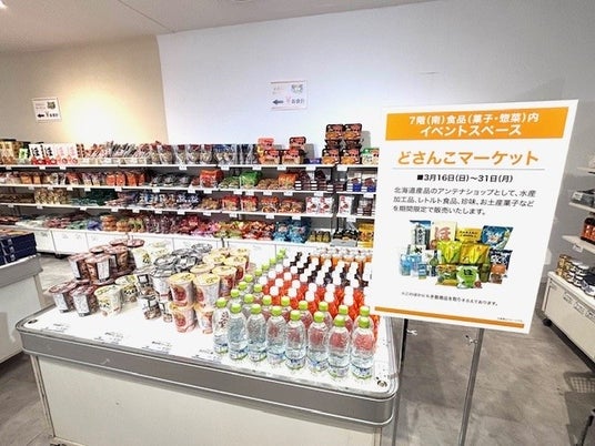 北海道産品のアンテナショップとして、水産加工品、レトルト食品、珍味、お土産菓子などを期間限定でご紹介しております。