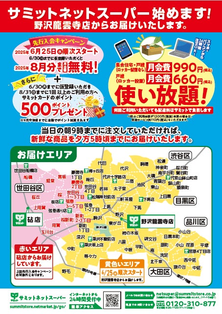 サミットストア野沢龍雲寺店は、2025年6月25日(水)より、「サミットネットスーパー」を開始します。