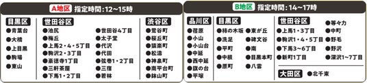 (世田谷区、品川区、目黒区、大田区、渋谷区の以下の地域)