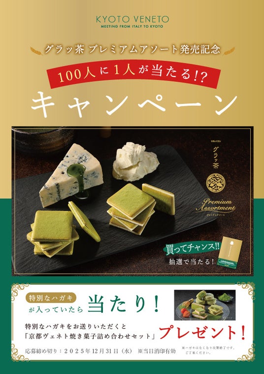 宇治抹茶とチーズが織りなす 抹茶スイーツを展開する「京都ヴェネト(株式会社寿庵)」より2025年4月1日(火)京都駅にて2種類のラングドシャを詰め合わせた「グラッ茶 プレミアムアソート」を新発売