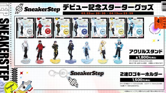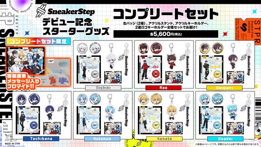 『SneakerStep』初となるオフィシャルグッズ、デビュー記念スターターグッズの発売が決定いたしました。最初に揃えたい必須アイテム全4種が登場。さらにメンバーごとの「コンプリートセット」もラインナップ。コンプリートセットだけで手に入る直筆複製メッセージ入りブロマイドは必見です。