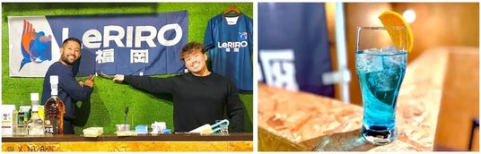 施設ではアルコールやソフトドリンクを提供(左)/チーム考案のオリジナルドリンク「ルリーロハイボール」(右)