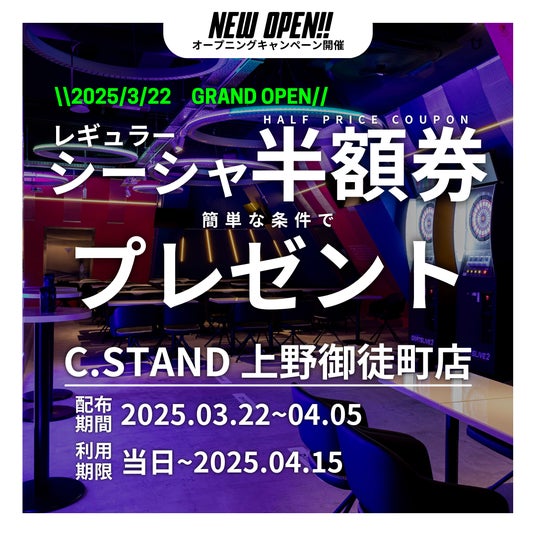 【C.STAND 上野御徒町店】3月22日 グランドオープン! シーシャとエンタメが融合する新感覚の空間を提供