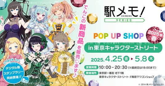 2025年4月25日(金)より、東京駅一番街 東京キャラクターストリートにて、「駅メモ!」シリーズオリジナルグッズを期間限定で販売します。「駅メモ!」シリーズオリジナルグッズを2,200円(税込)以上お買い上げのお客様へのノベルティ企画や、ゲーム内にて、デジタル版スタンプラリーイベントを実施します。