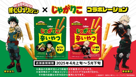 カルビー株式会社(本社:東京都千代田区、代表取締役社長:江原 信)は、TVアニメ「僕のヒーローアカデミア」通称“ヒロアカ”(原作:堀越耕平(集英社 ジャンプ コミックス刊))とコラボレーションして、『じゃがりこ辛いやつ わさび醤油味』を2025年4月上旬より期間限定パッケージに切り替えます。また、『じゃがりこ辛いやつ 旨辛明太チーズ味』を、同じく期間限定パッケージにて、2025年4月7日(月)から全国のコンビニエンスストア先行で発売します。