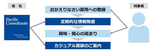 パシフィックコンサルタンツ株式会社(住所:東京都千代田区、代表取締役社長執行役員:大本修)は、当社を退職した正社員および内々定辞退者を対象にした「おかえりなさい採用(アルムナイ採用)」を開始いたします。