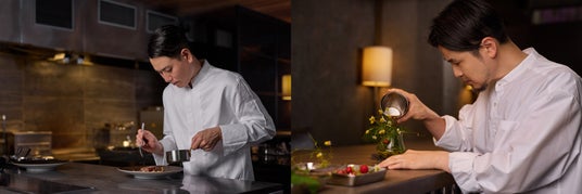 左:シェフ 片山ひろ 右:ソムリエ 児島由光 (C)Shoko Takayasu