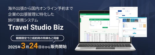 旅行会社様・企業様の出張に関する業務を全て管理できる、総合パッケージ『Travel Studio Biz』の販売開始を記念して期間限定でご成約時の特典もご用意!