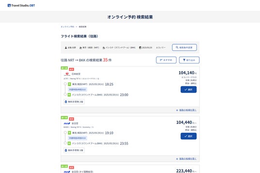 OBTシステムは、出張者様がご自身で海外航空券やホテルの予約を行うことができるシステムとなります。